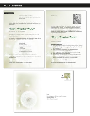 beliebtesten Trauerkarten-Motive. Diese bieten viel Platz für individuelle Worte über die verstorbene Person. Gerne verwenden wir auch andere Bilder Ihrer Wahl und gestalten die Karten